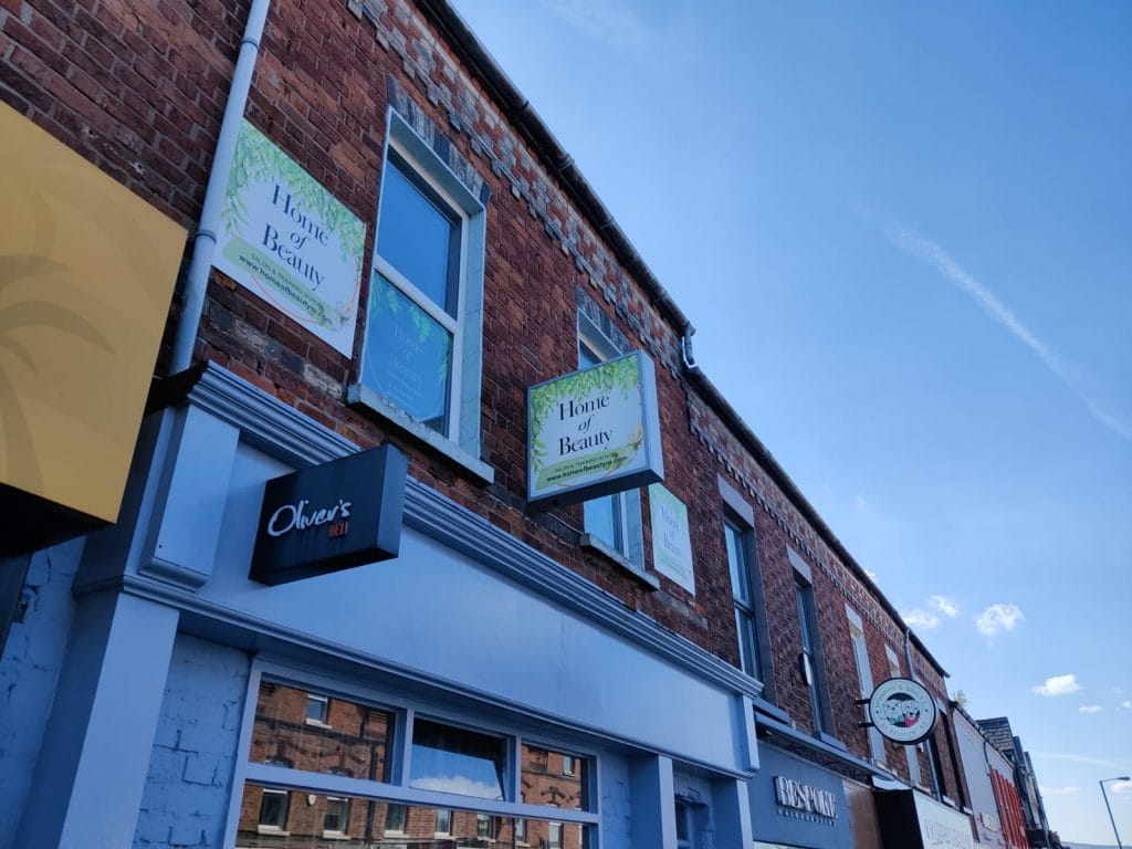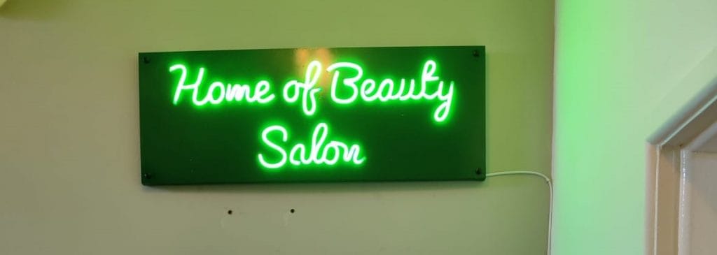 The second complete shop fit of the week for Home Of Beauty on the Belmont Road in Belfast. A projection sign, flat panels & window graphics finished off with a custom LED Neon sign. We think it looks amazing & just in time to receive the news they’ll be reopening soon! Good luck to Carrie & the team, thanks for choosing The Sign Shiner, a complete signage solution company.