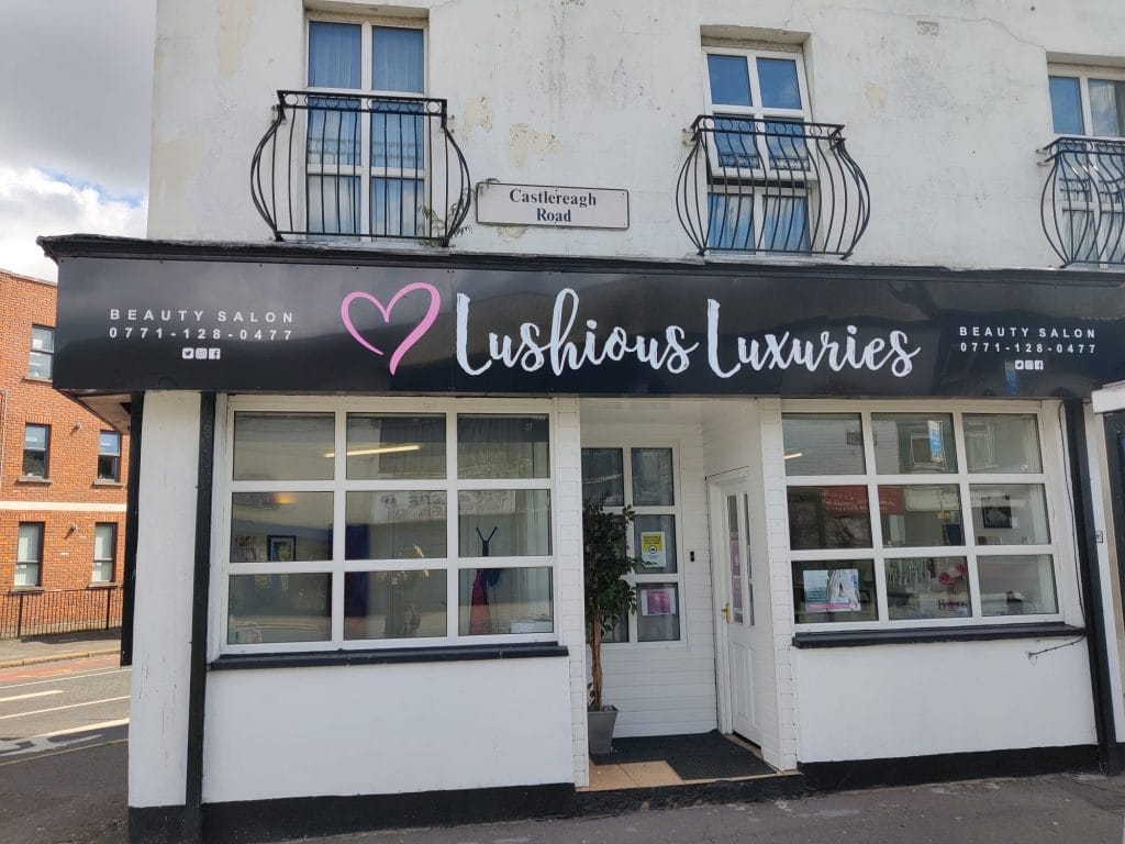 A multi-faceted fascia install for the team at Lushious Luxuries, a beautiful nail salon in Belfast. The quirky corner lay out of this premises involved the fascia extending all the way round. We think it looks great! The Sign Shiner – a compelte signage solution company.